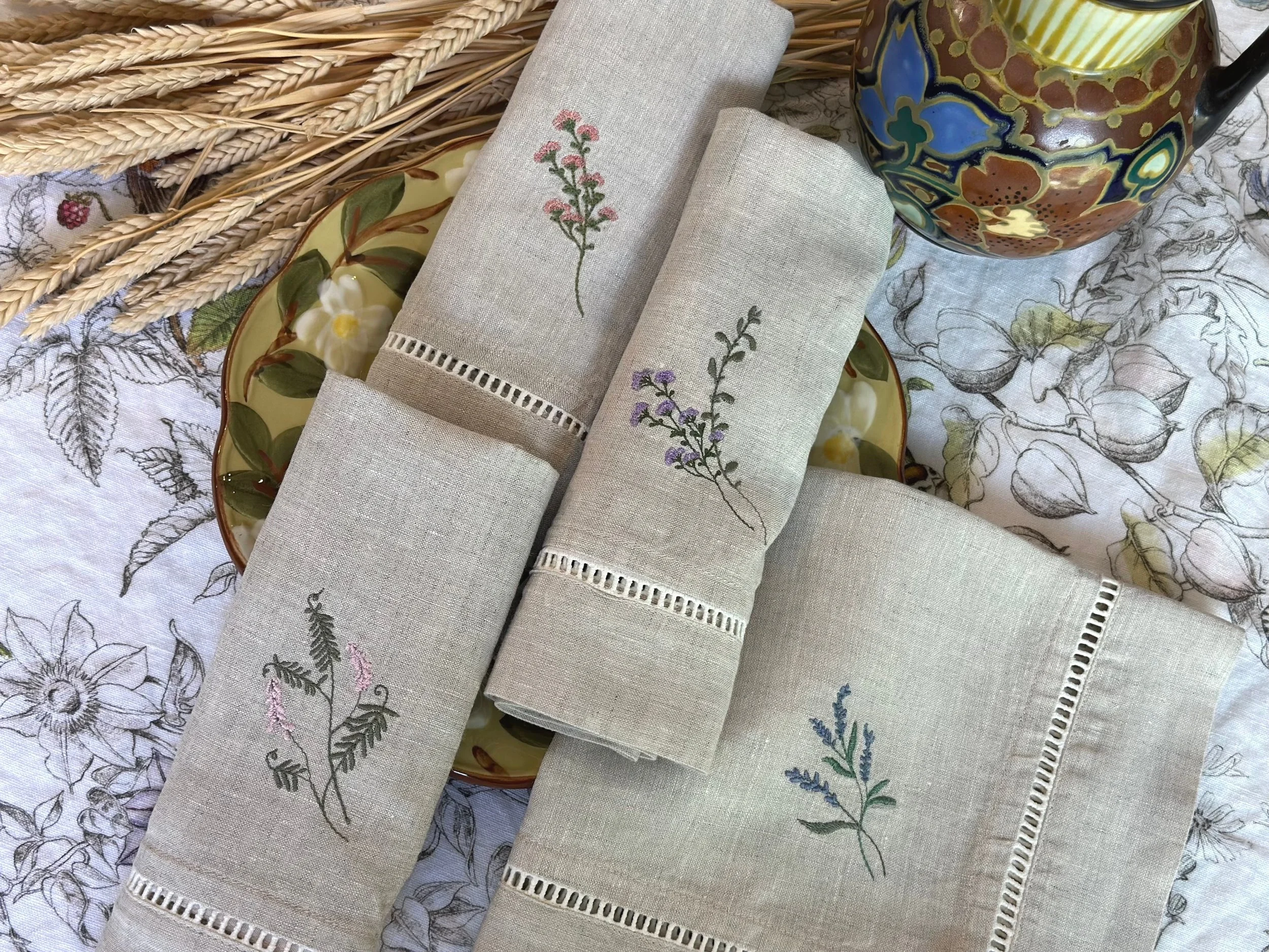 Each floral embroidered linen napkin I create is a blend of nature-inspired beauty and timeless elegance. Using high-quality linen and delicate stitched details, I bring wildflowers and garden blooms to life—adding charm and refinement to any table setting. Whether you’re hosting a special gathering or simply enjoying a quiet meal, these napkins elevate the dining experience with a touch of artistry. They also make thoughtful, heirloom-quality gifts for anyone who appreciates craftsmanship, natural beauty, and the little details that make life feel special.