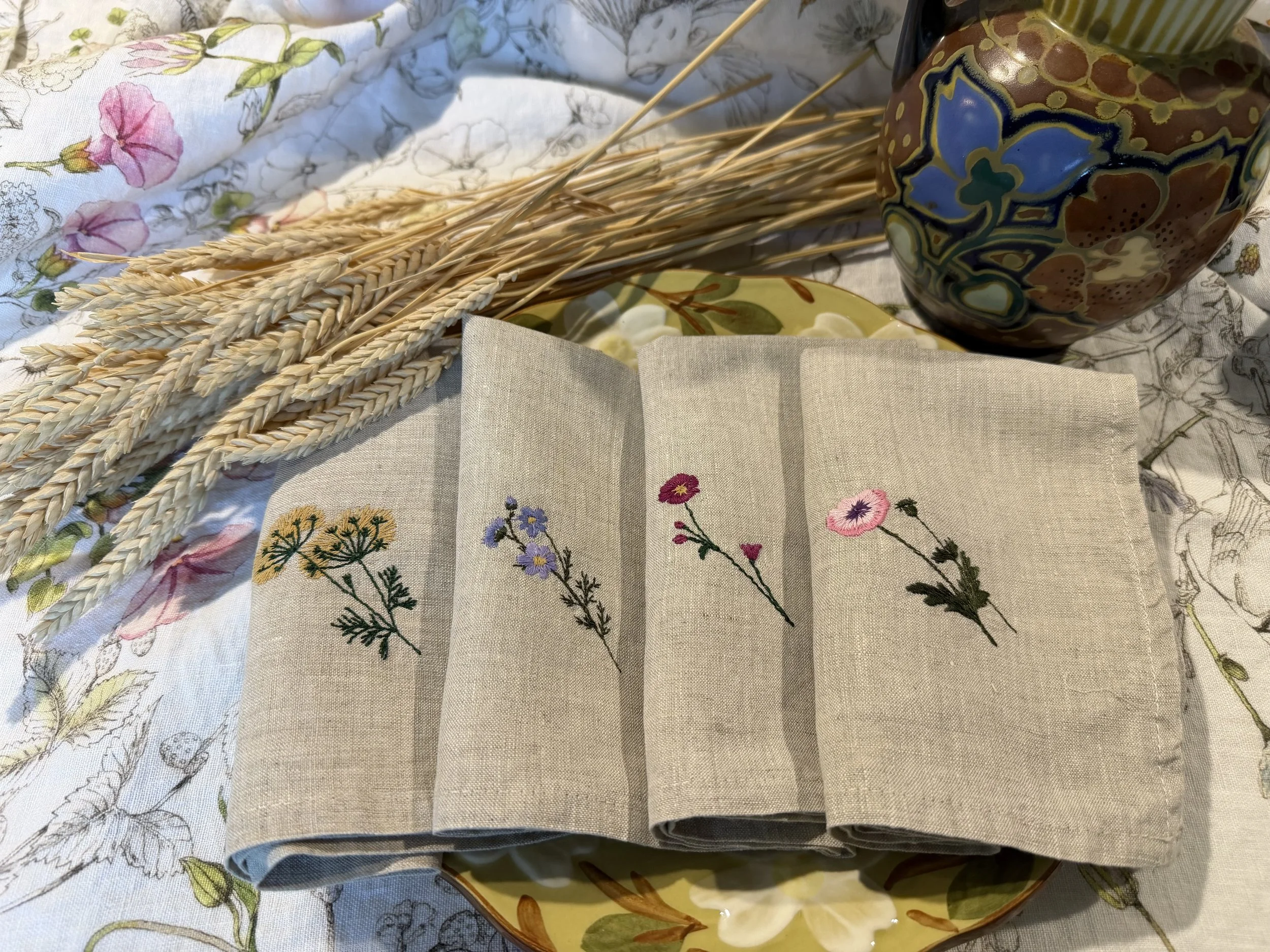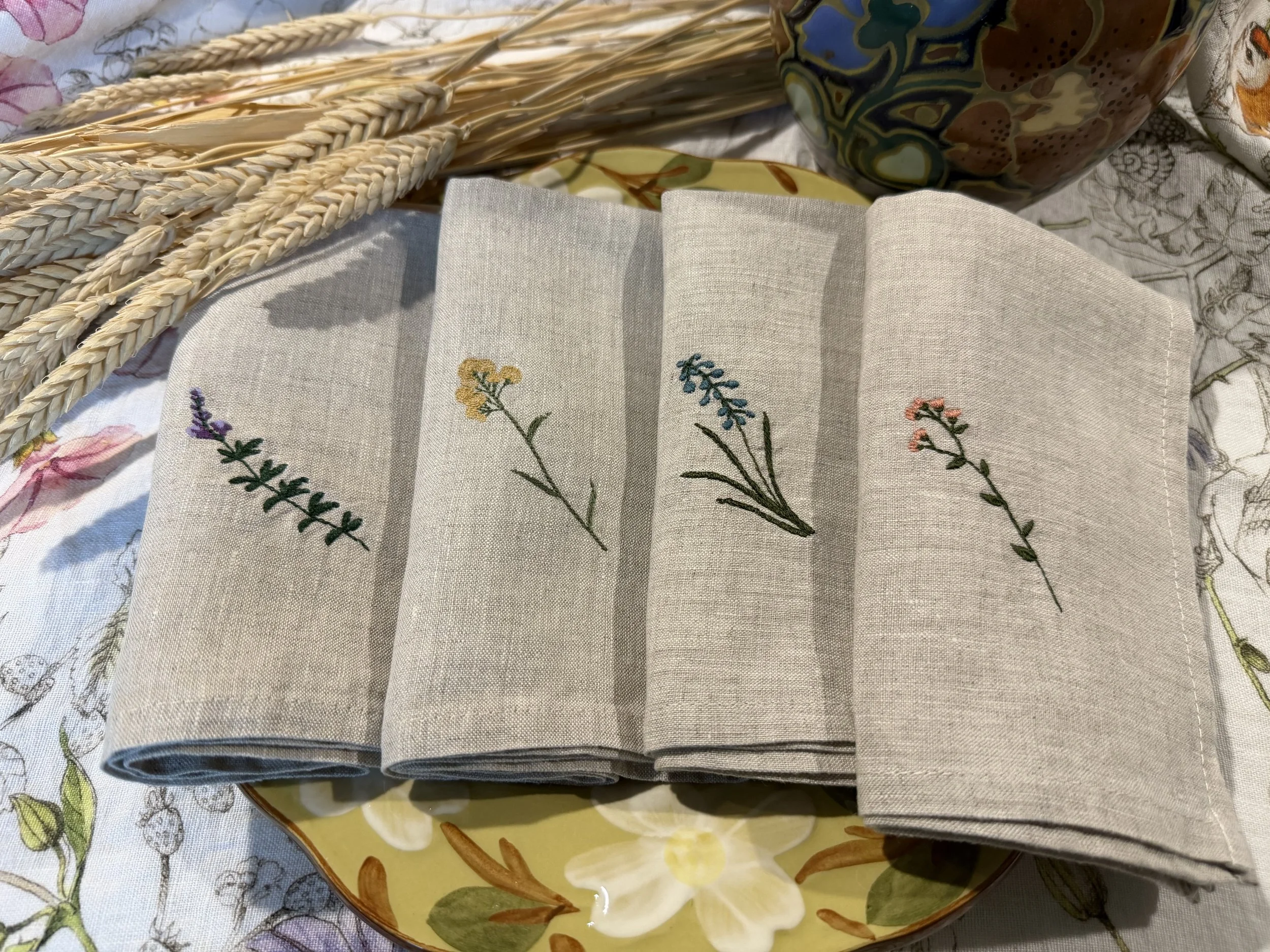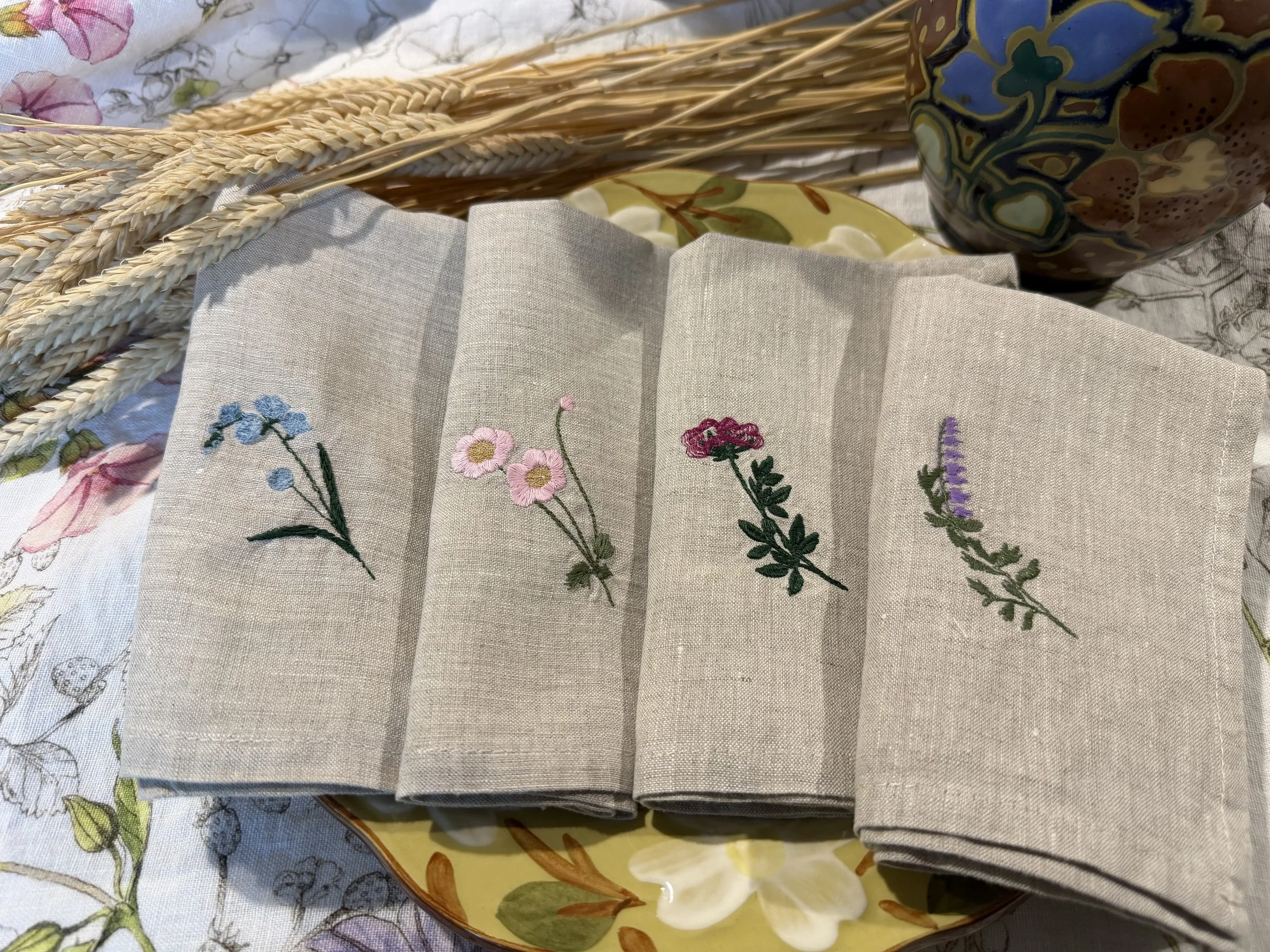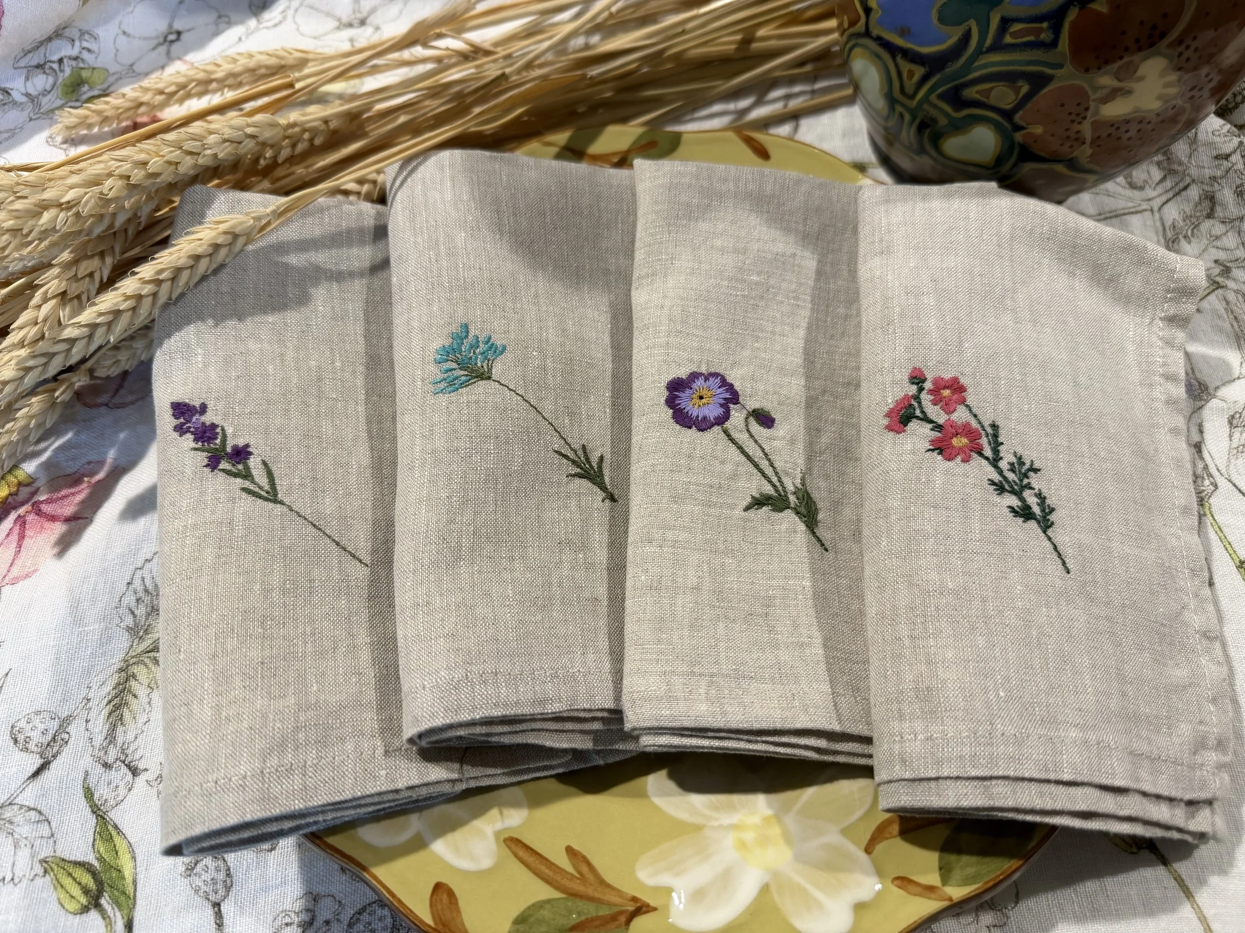 Add timeless charm to your table with our 100% linen napkins, beautifully embroidered with delicate wildflowers. These are 14”x14” .Pre-washed for a soft, relaxed feel, these napkins are perfect for everyday elegance, dinner parties, weddings, or thoughtful gifts. Handcrafted details meet natural texture for a unique, eco-friendly table setting.